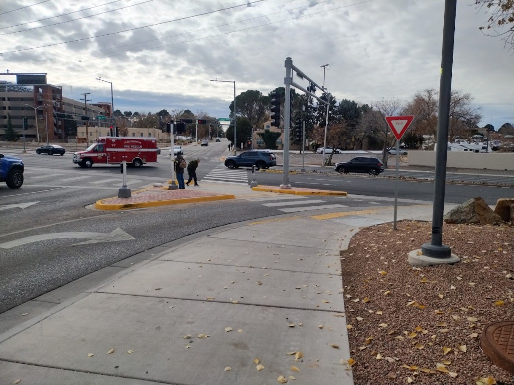 - The wait time at this crossing is still really, really long, despite all the walker/rollers and presence of a larger UNMH that will have more folks trying to make it from Yale/Lomas. This is, of course, because well, you know, priority is always for drivers.