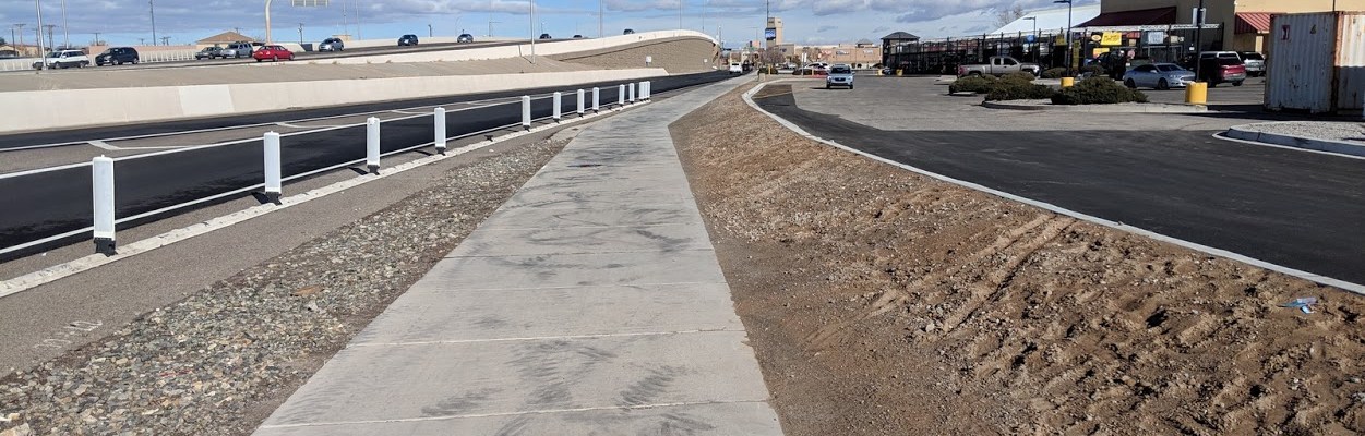 Instead, thanks to the intrepid ingenuity of the City of Albuquerque Planning Department with regards to some parking lot changes required by the Coors/Ouray Walmart, the truck-laden, gravel-filled sidewalk passageway now looks like this: