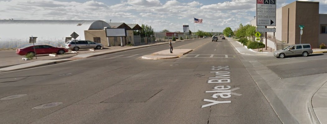 In contrast, let’s head a bit west on Gibson Blvd., turn north and look at the intersection of Yale Blvd. and Ross SE, location of MAS Charter School: