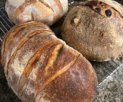 But this week, as I take on this new-old endeavor of learning about baking, I get to revisit my marginal student status. This week, according to the recipients of my labors, I got an “A.” My loaves—two olive and one sourdough—had great oven spring, open crumb, crispy, snappy crusts. I proudly posted them on Facebook and Instagram and basked in my many adoring bread fans.