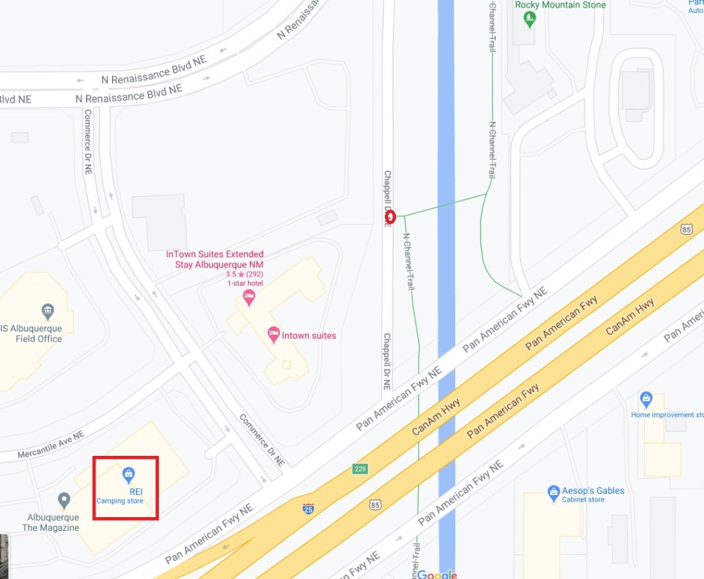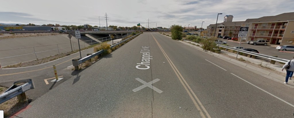 Yeah, the above is where the North Diversion Channel Trail (NDC), used by thousands of walkers/cyclists a month, “connects” with the northern end of all the retail shops and such surrounding Montano Blvd. west of I-25. That gap in the guard rail (now with a bollard that was the result of WAY too many lengthy discussions that I will not bore you with at this time) constitutes the “integration” of the hugely popular NDC with its north/south transportation parallel neighbor I-25. Quality integration is, of course, critical because otherwise, as is largely true now, I-25 serves as a functional “border wall” for walkers/cyclists trying to survive crossing the damn interstate. Here’s a map view if not familiar with the area: