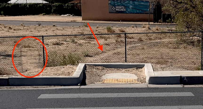 We give you the intersection of Coors and Paseo del Norte NE, which has a really nice sidewalk. Until it doesn’t.