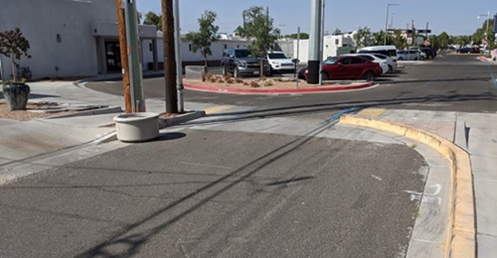 And this weekend, we’re left with Mighty Planter swept away and what was meant to be a “cycle track” is just another driving throughway. Concrete planters described as monarchs aside, there’s much more to this story. Actual news source “Downtown Albuquerque News” (DAN) writes indirectly on the subject of the failed diverter in relating the story of neighbors on New York Ave. who wish to stop El Vado patrons from parking all up and down their street: