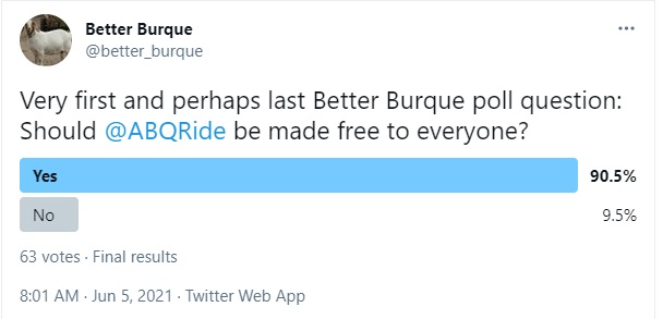 Having made budgetary allocation to start free fares in October, Better Burque, KRQE and evidently every entity with polling technology has asked: Should ABQ Ride be free to all?