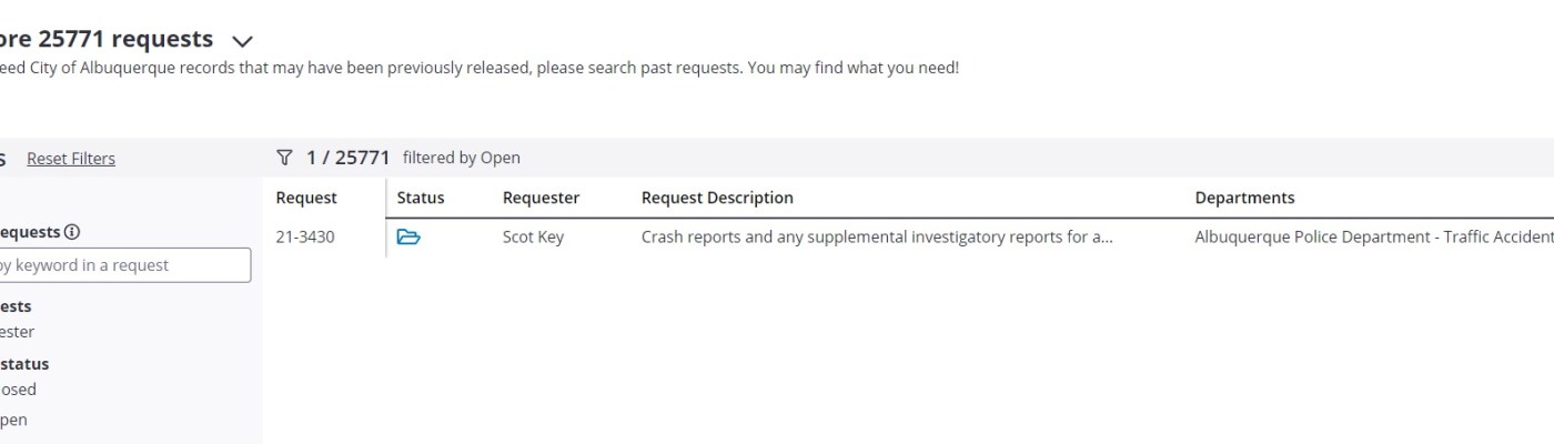 My simmering level of upset about the situation reached closer to boil this morning when I searched status of other CABQ requests through the public records website.