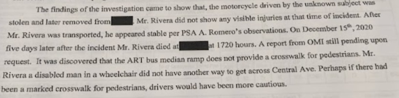 The December 2020 case of victim Mark Rivera is much different; in fact, the concluding paragraph of the supplemental investigation subtly, yet strongly implicates the City of Albuquerque as accessory to the crime.