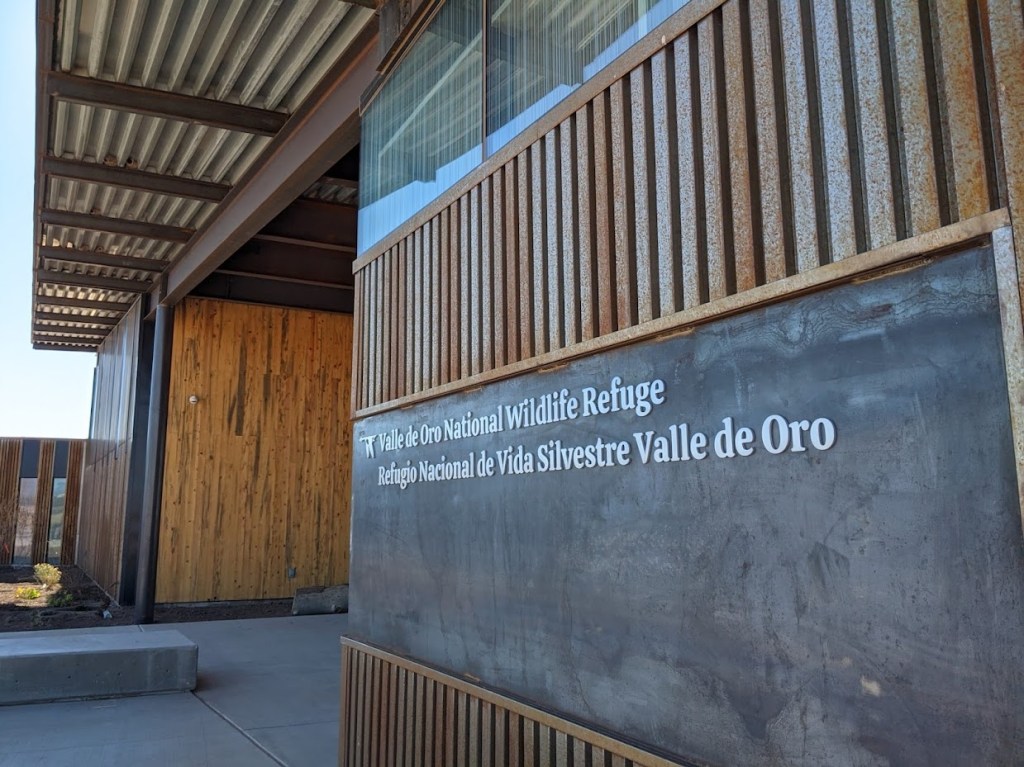 The fine folks building the nearly opened Valle de Oro NWR Visitor Center have currently made it possible for car-free folks to ride/walk right up the Center, while drivers are blocked a ways up the road.