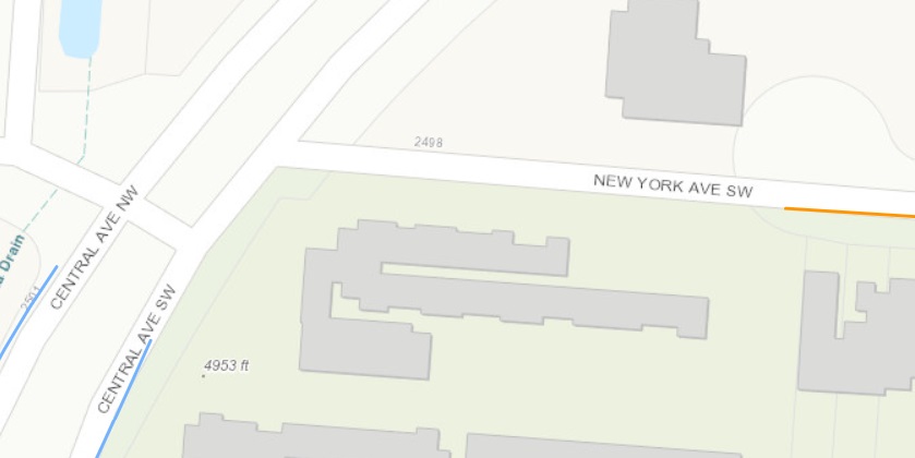 Answer to Mystery Game #1: Yes, that’s the vague, pitiful end of New York Avenue (History trivia tidbit: Did you know Lomas used to be named New York?) at Central. Several readers got Question #1 right, and answers to Question #2 (How does a cyclist keep going east, west, north from this point?) trended toward “You don’t.”