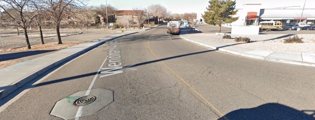 As for bike lane, ostensibly the bike lane continues on toward Four Hills, but it’s so poorly marked as to be dangerously useless at/near the intersection. One of ABQDMD’s worst efforts, overall, and that’s saying something!