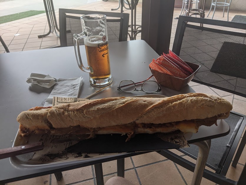 Nearby photo #1 is a sheep we’ll call “Harold” as he’s a rogue who has found an entire pasture of high grass for himself. Dangerous, those smart sheep. I tried ordering the medium bocadillo, but the wise staff instructed me to this, the “small” one. As with most bike tours, it’s a tour along/crossing rivers. Here’s the Rio Avia outside Ribadavia, Spain