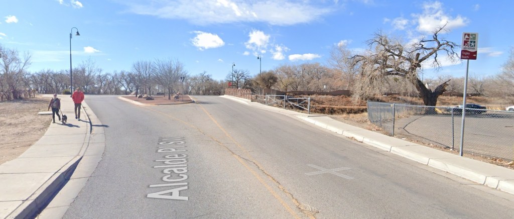You’re cycling westbound on Alcalde. You know the Bosque Path is just over that rise. How do you cycle to get to the Path?