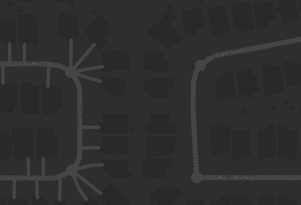 This is Ocala St. S.E., almost to Four Hills in the far SE part of town. Maybe you live up there, or maybe you’re from downhill (west) and you’ve heard there’s a good way to get home down this street, but as Singing Arrow SE changes name to Ocala, things are curving south. Hmm…where’s the route?