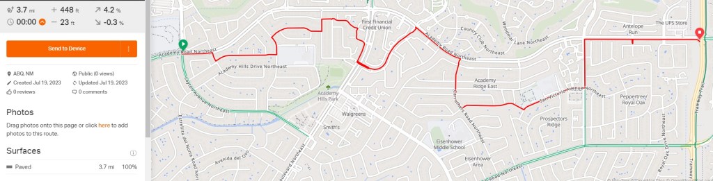 Realizing you, dear Better Burque reader, might not agree with any/all of the above to the point that your head is metaphorically exploding, let’s get to our example using Ride With GPS routing: