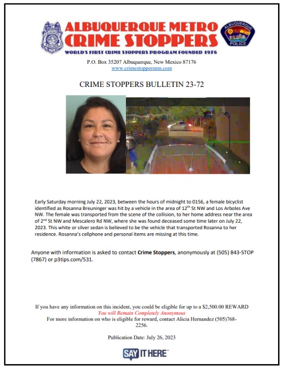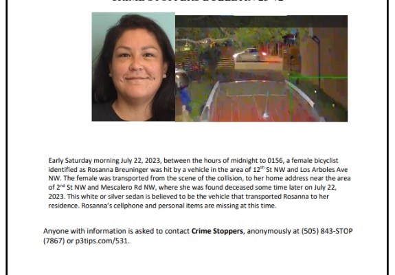 So Rosanna “Zan” Breuninger was killed last Friday night going into Saturday morning by, as best we can tell presently, a driver who hit Breuninger as they cycled at/near 12th NW and Los Arboles. This driver, this fucking human, then apparently picked up the mortally injured Rosanna, put them in the car and drove them not to a hospital, but to Rosanna’s apartment.