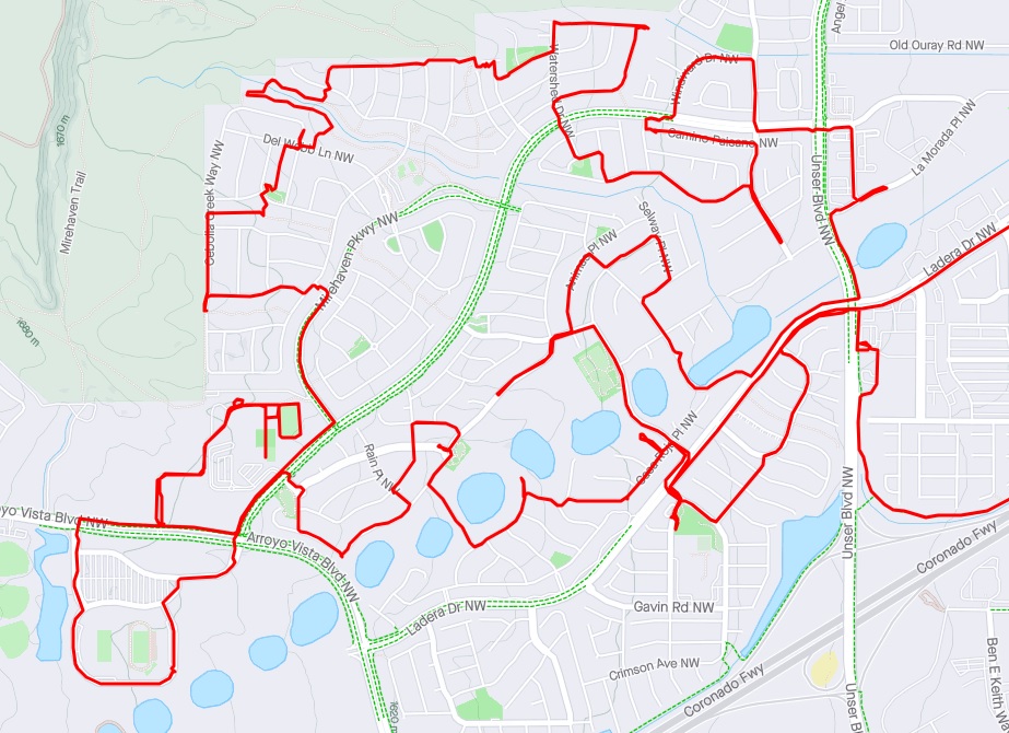 - Watershed Dr. NW to cross Tierra Pintada all worked very well.