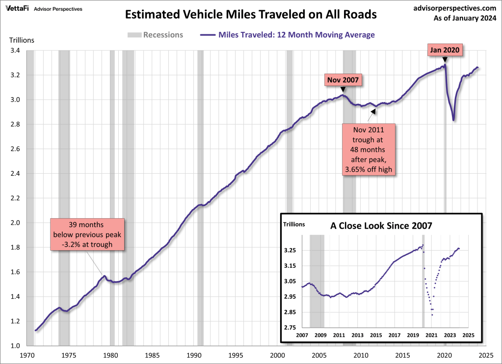 Chronologically consistent with the MRCOG numbers above, the Federal Highway Administration estimated a 3% post-Covid drop in nationwide vehicle miles traveled remained in 2022. That’s not 46%.
