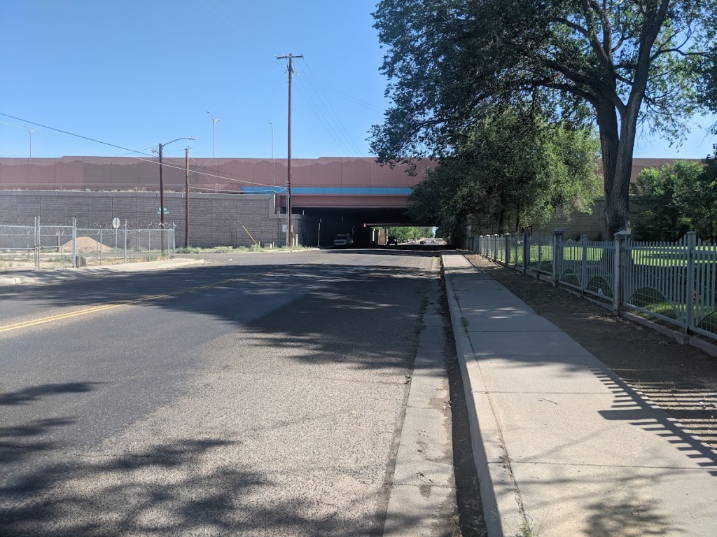 In short, before going way too long, my biggest correction to the proposed “bike boulevard” on Edith from Gibson Blvd. to Menaul Blvd. is that part of it should definitely NOT be on Edith, but William St. instead. And last week I already posted the single biggest reason for this vital switch, in that Edith crosses Avenida Cesar Chavez at grade (through a red light), while William avoids the Avenida via an underpass. To save you a click through, here are those two views.