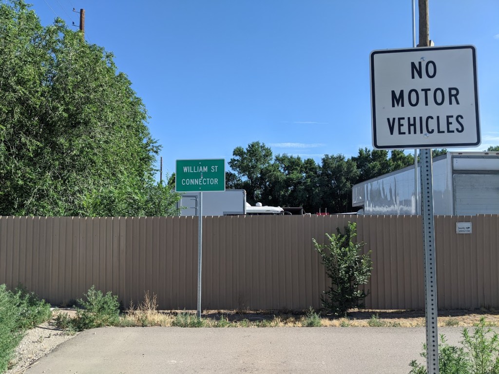 Moreover, did you know William Street is so great, besides the lack of traffic and stop signs, that it now has signs and other infrastructure noting it’s the spiffiest way ever to get to/from the Bosque Path? We will now take a photo detour to show the many who do not yet know about this.