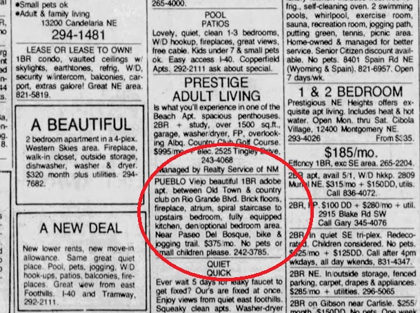 The Trail being only about five miles long in ’81 (from Cesar Chaves Blvd. to Candelaria Rd.”), triathletes cycled and ran up and down it before heading off to swim in the Rio Grande River HS pool. Yeah, that’s too bad about the River; it would have been made quite a bit more sense than going from 10-mile run to driving five miles for a 250-meter swim. Maybe they biked there, but I kinda doubt it. Nevertheless, from 1977 to 1981 the Trail had now gone from hillbillies to big-time organized events.
