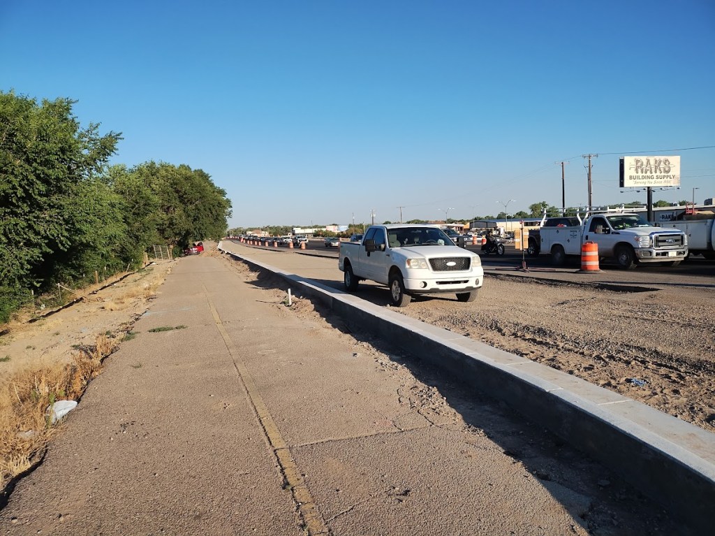 The closure began this morning and I, a South Valley cyclist who has long dreamt of Rio Bravo being closed to vehicular traffic, couldn’t miss it. First and foremost, the County/NMDOT has done a very good job, imho, of notifying folks about this closure. Gregory Hasman as the Journal’s “Road Warrior” mentioned it. It was in all the local “legacy media.”