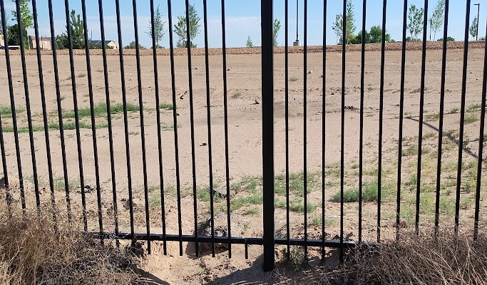 Bernalillo County’s Tom Tenorio Park is fully (almost) surrounded by the fencing above, preventing neighbors from accessing the park adjacent to their homes and altogether (almost) defeating the purpose of a public park.