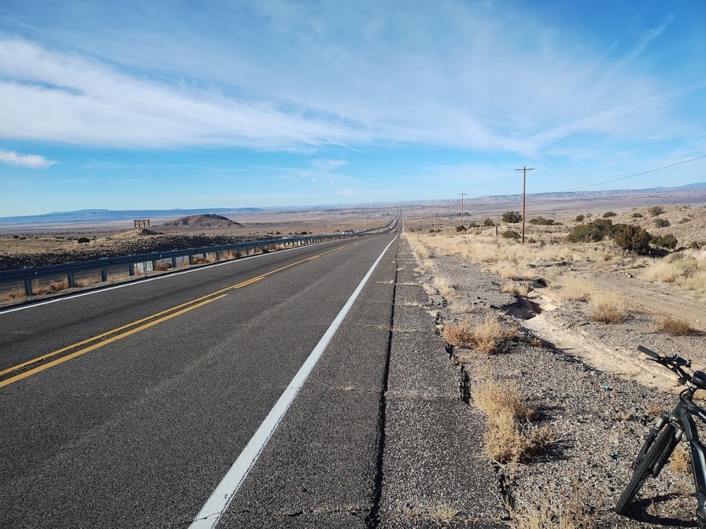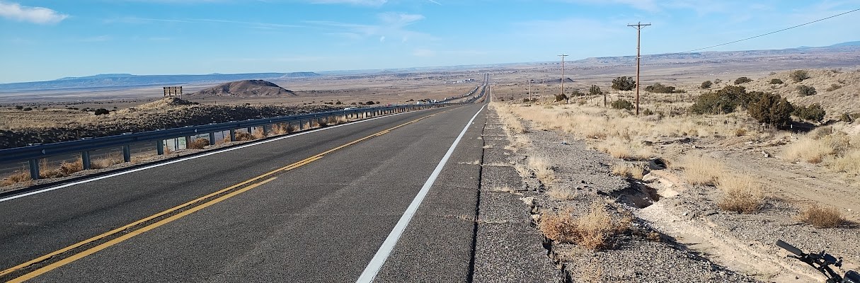 Looking West atop Nine Mile Hill The road goes on *forever. Enjoy. *Actually, this road ends at the Rio Puerco about three miles west of this spot. But you get the idea. Share this: Click to share on X (Opens in new window) X Click to share on Facebook (Opens in new window) Facebook Like Loading... Related