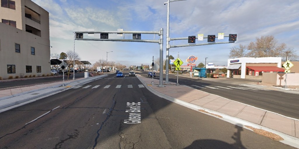 The Gibson HAWK was built in response to creating the Gateway Center, as well as neighbor complaints about misuse of an elevated pedestrian bridge nearby. Here’s a 2022 study on Gibson between San Mateo and San Pedro Blvds recommending the HAWK.