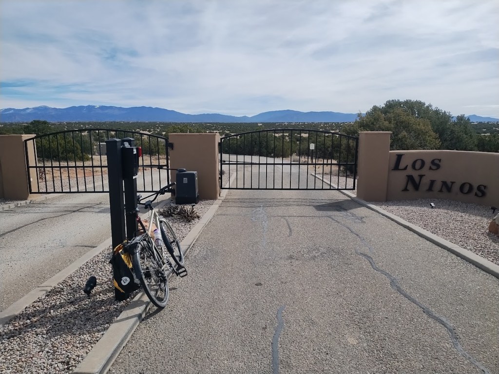One rich people enclave followed another through Campanas, Los Sueños, La Mirada, and Aldea before catching the NM-599 frontage road back to town. Along the way, I spied a “Road Closed” sign in front of a brand-newly paved road off the main loop (see little loop inside bigger loop in route above). As any cyclist will tell you, the only thing better than “Private Road” in these enclaves is a “Road Closed” sign. I, of course, went through the sign and saw a bunch of this: