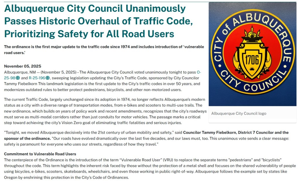 Thanks as always for your service, specifically your work to make walking and rolling ABQ’s roadways safer!