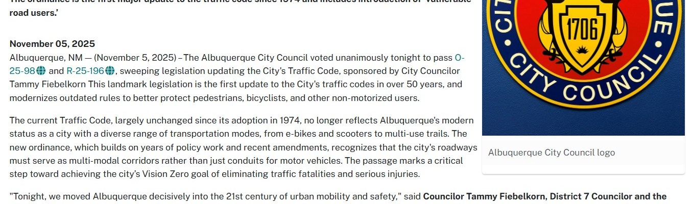 Thanks as always for your service, specifically your work to make walking and rolling ABQ’s roadways safer!