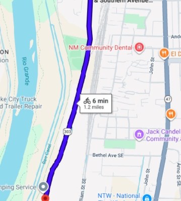 You might be thinking “Who cares? There’s a bike path on the Bosque parallel and adjacent to 2nd Street in this stretch!” And you’d be right to ask, but: 1. The Bosque Path angles west and 2nd Street tends east, so it saves a bit of time/distance; 2. More importantly, it’s a new (kinda) bike path! New stuff! And, in this case, stuff that usually has drivers going WAY over the posted 35 mph.