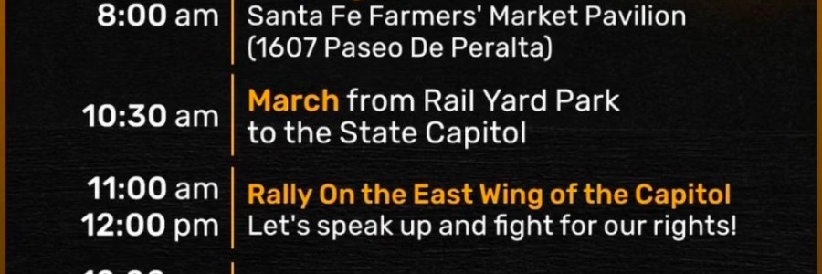 Some of us train-loving Burqueños will be a few minutes late, but maybe I’ll see you on the 9:35 Rail Runner headed up to this march and related events tomorrow morning. Should be lovely weather for a march and etc. with you.